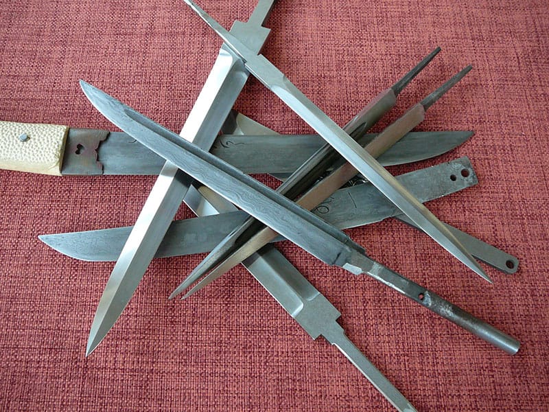 - Asmens izgatavošana no Damaskas tērauda, nerūsējošā tērauda vai instrumentālajiem sakausējumiem.