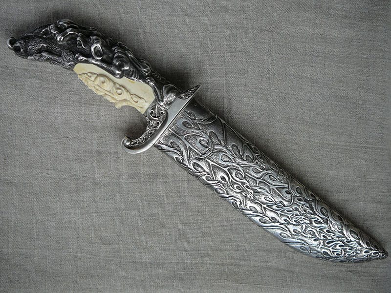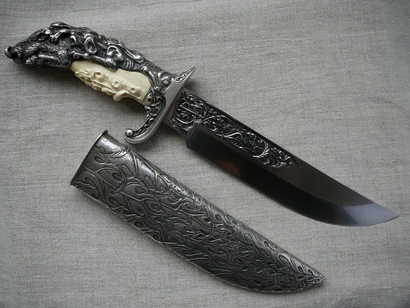 - Rokturis no vērtīgiem materiāliem – sudrabs, mamuta ilknis, raga gabali vai retas koksnes.